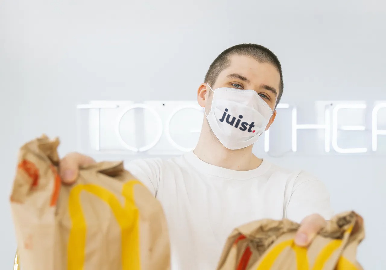 Niet-medisch mondkapje met Juist logo.